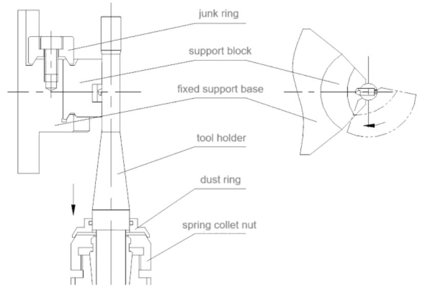 ● Sinek kesici destek yapısı, İtalya'daki aynı takım tezgahlarının özelliklerinden yararlanır. Destek bloğu, iyi bir destek etkisi olan bir ark yüzeyi tarafından desteklenir; Kesici Arbor, bir yay ayağı somunu ile sabitlenmiştir; Aynı zamanda, kesici çarşafın üst kısmında kesici çarşafın destek sertliğini ve doğruluğunu artırmak için hareketli bir uç kullanılır. Sinek kesici makul bir yapıya sahiptir, bu da yüksek sertlik ve yüksek hassasiyet sağlar.
